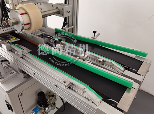 <p>適用于(yu)單層膜(mo)(mo)(mo)單面覆(fu)(fu)膜(mo)(mo)(mo),保(bao)護(hu)產(chan)(chan)品(pin)(pin)(pin)表面無(wu)污(wu)染和(he)損傷(shang)。連接產(chan)(chan)線(xian)(xian),實現無(wu)人(ren)話生產(chan)(chan),針對(dui)平(ping)面性(xing)產(chan)(chan)品(pin)(pin)(pin)進行覆(fu)(fu)膜(mo)(mo)(mo)保(bao)護(hu),并帶自動(dong)裁(cai)斷功能,也可多通(tong)道組合覆(fu)(fu)膜(mo)(mo)(mo),使(shi)產(chan)(chan)能達到最大化。可獨立設定貼附行程,使(shi)通(tong)用性(xing)更(geng)強!取代(dai)傳(chuan)統(tong)覆(fu)(fu)膜(mo)(mo)(mo)機的人(ren)工(gong)剪裁(cai)弊端,提高覆(fu)(fu)膜(mo)(mo)(mo)效率。<p/> <p>核心工(gong)作原理:<p/> <p>將產(chan)(chan)品(pin)(pin)(pin)放置于(yu)流(liu)水線(xian)(xian)上,上工(gong)序(xu)自動(dong)上料,經過導向機構調整(zheng)產(chan)(chan)品(pin)(pin)(pin)姿態,傳(chuan)感器檢測到產(chan)(chan)品(pin)(pin)(pin)經過,傳(chuan)回(hui)信號到貼附控制系統(tong),控制系統(tong)在適當位置控制電機送(song)出保(bao)護(hu)膜(mo)(mo)(mo)并貼附在產(chan)(chan)品(pin)(pin)(pin)待貼附位置上,切刀自動(dong)裁(cai)切。<p/>